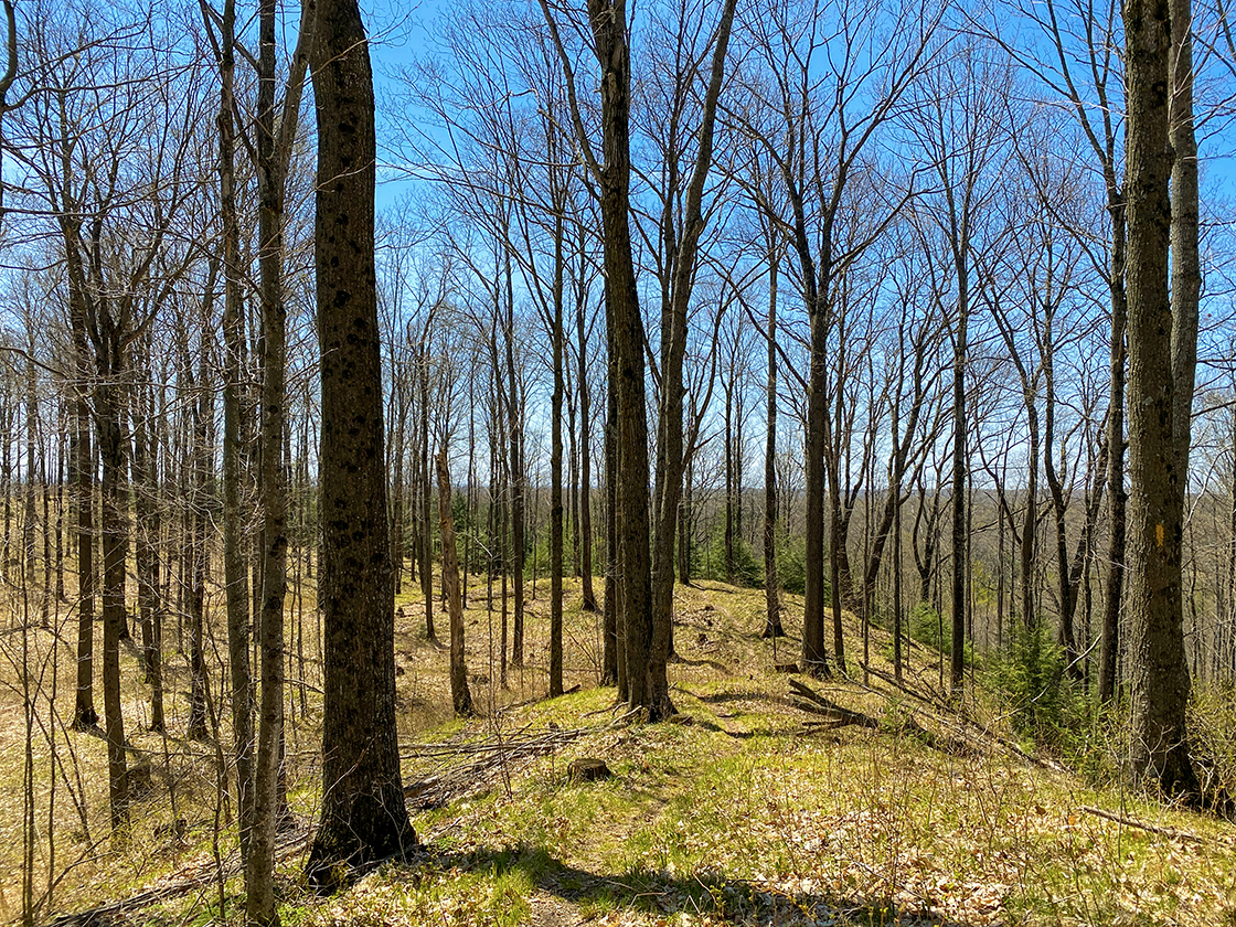 Continuing eastbound the trail descends Lookout Mountain more casually through a beautiful hardwood forest. The trail joins the access road for Lookout Mountain and descends steeply before turning back off on a single-track hiking trail. You’ll encounter a few smaller hills before reaching the ATV parking lot.